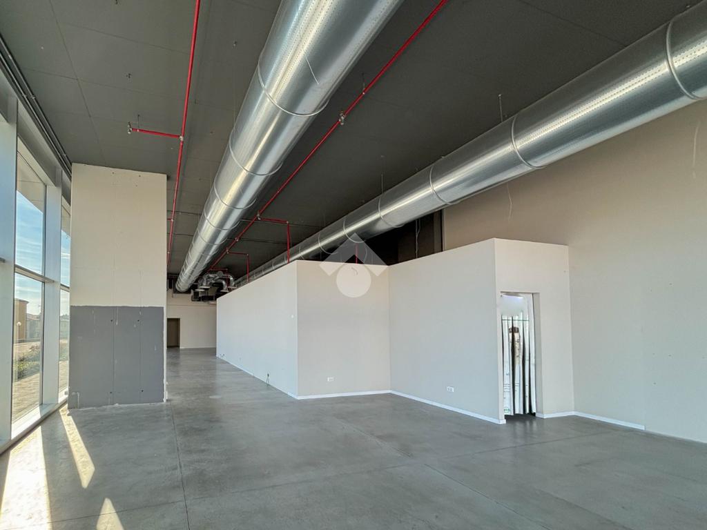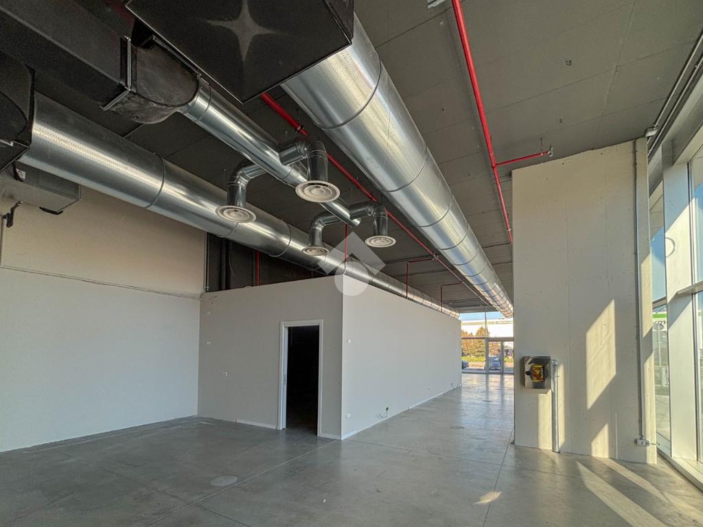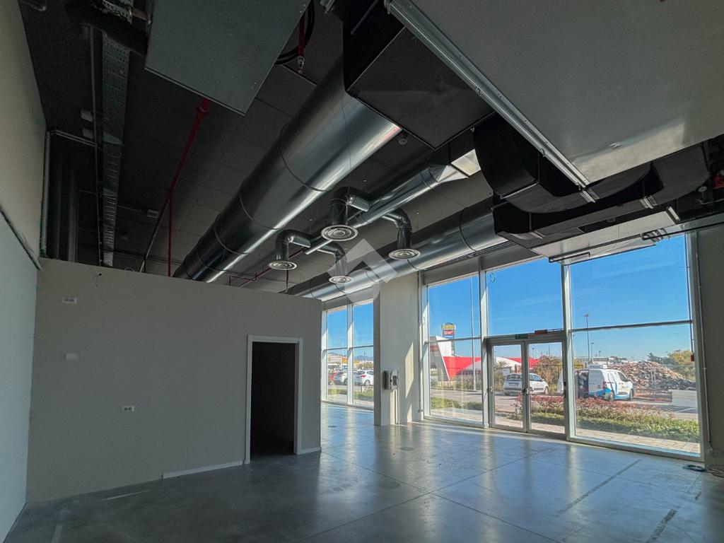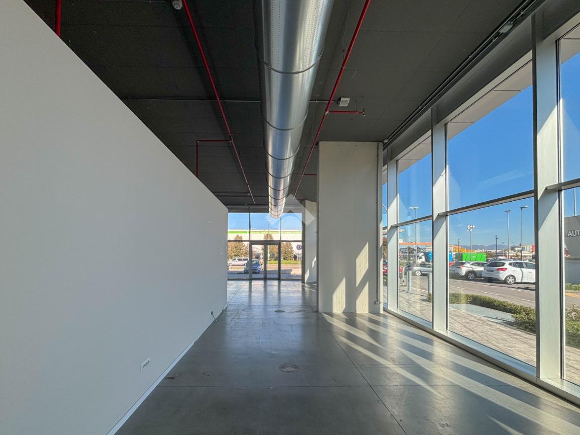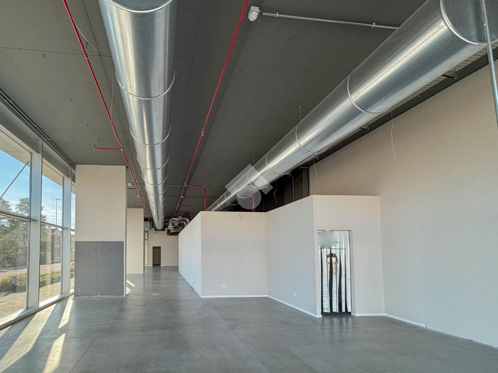 Il negozio misura circa 280 metri quadrati ed è dotato di un servizio igienico a norma disabili. L'ambiente risulta particolarmente luminoso grazie alla presenza di quattro grandi vetrine che affacciano direttamente su una via molto frequentata. All’interno del negozio sono presenti le seguenti impiantistiche: impianto elettrico e di illuminazione, impianto di riscaldamento e di condizionamento autonomo, l’antincendio ad estintori, idranti e sprinkler, l’anello antincendio condominiale, i muri REI e inoltre è presente la predisposizione per l’impianto d’allarme e di videosorveglianza. Al piano seminterrato dell’edificio troviamo un parcheggio di circa 180 metri quadrati destinato alla clientela e ai dipendenti dell’edificio.