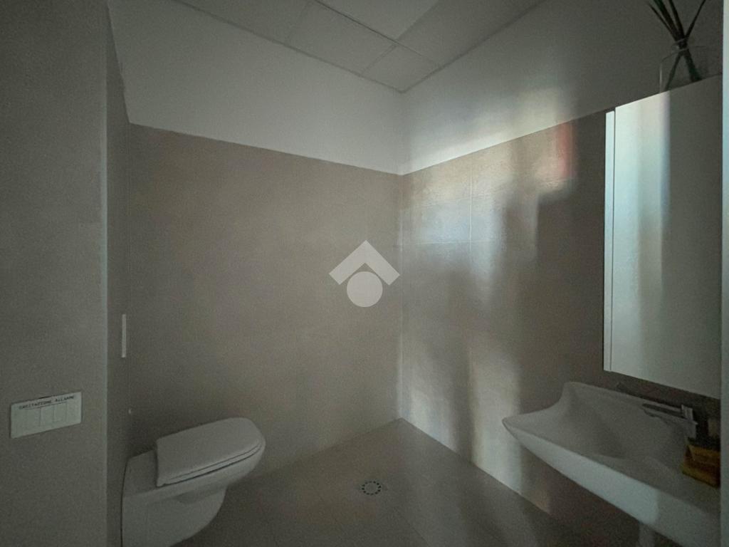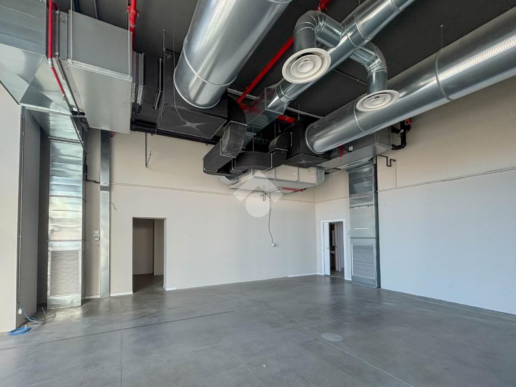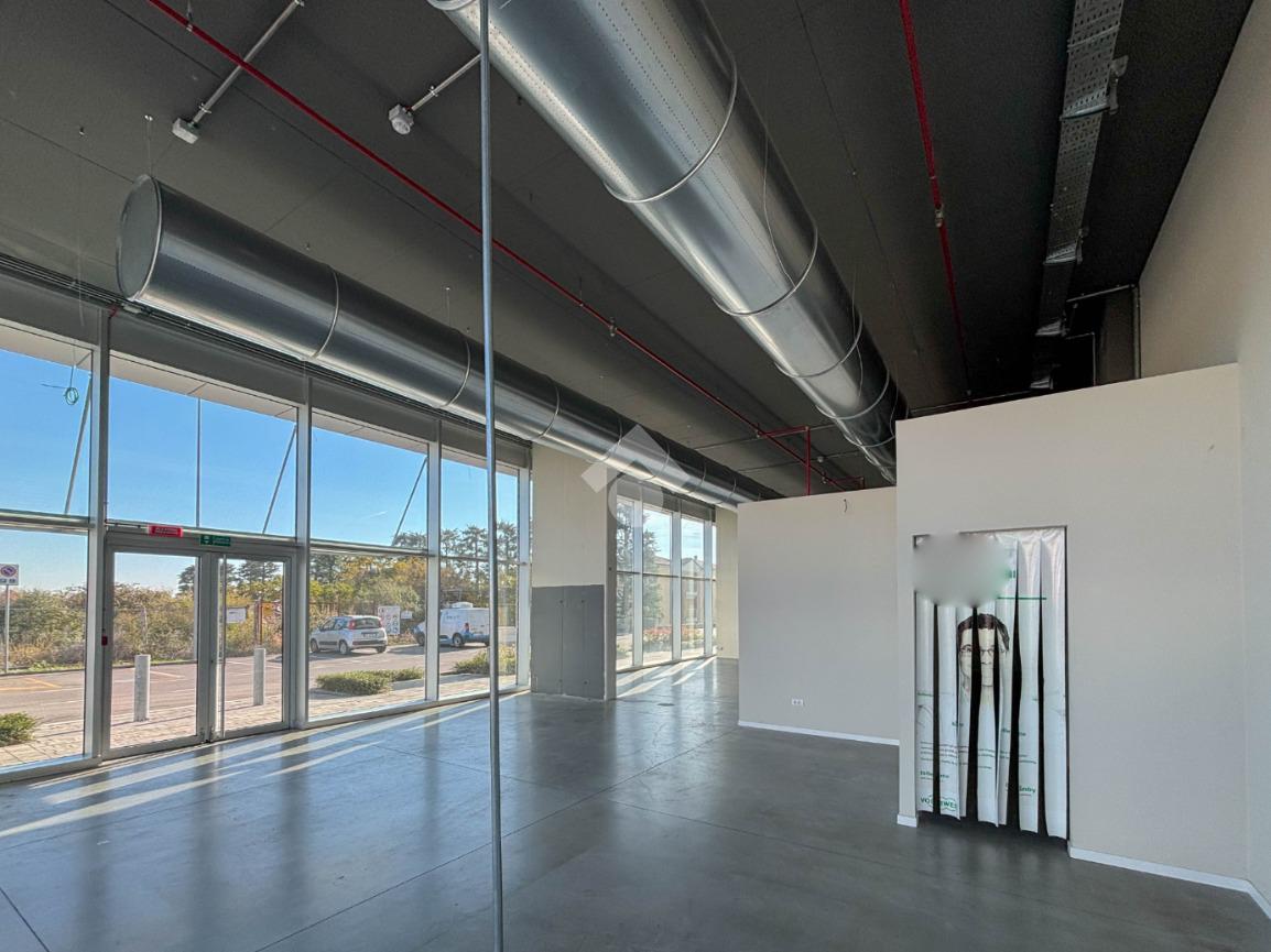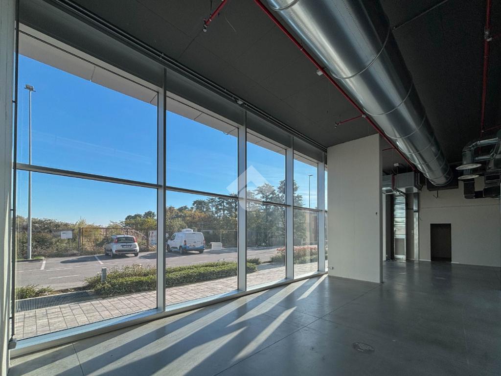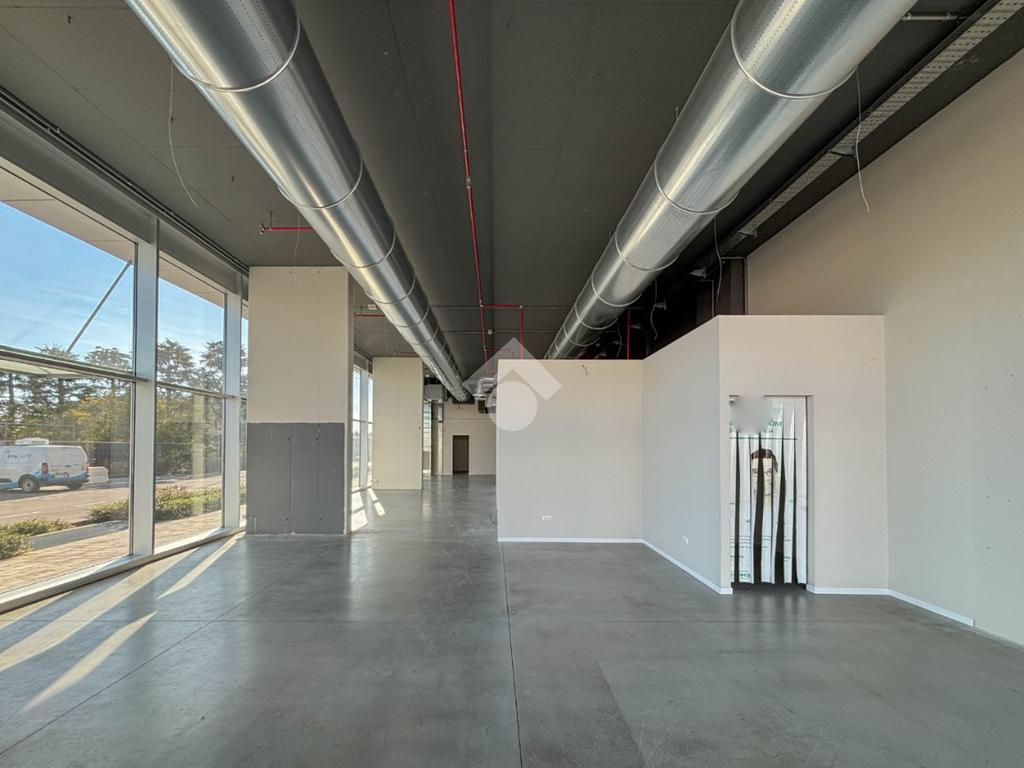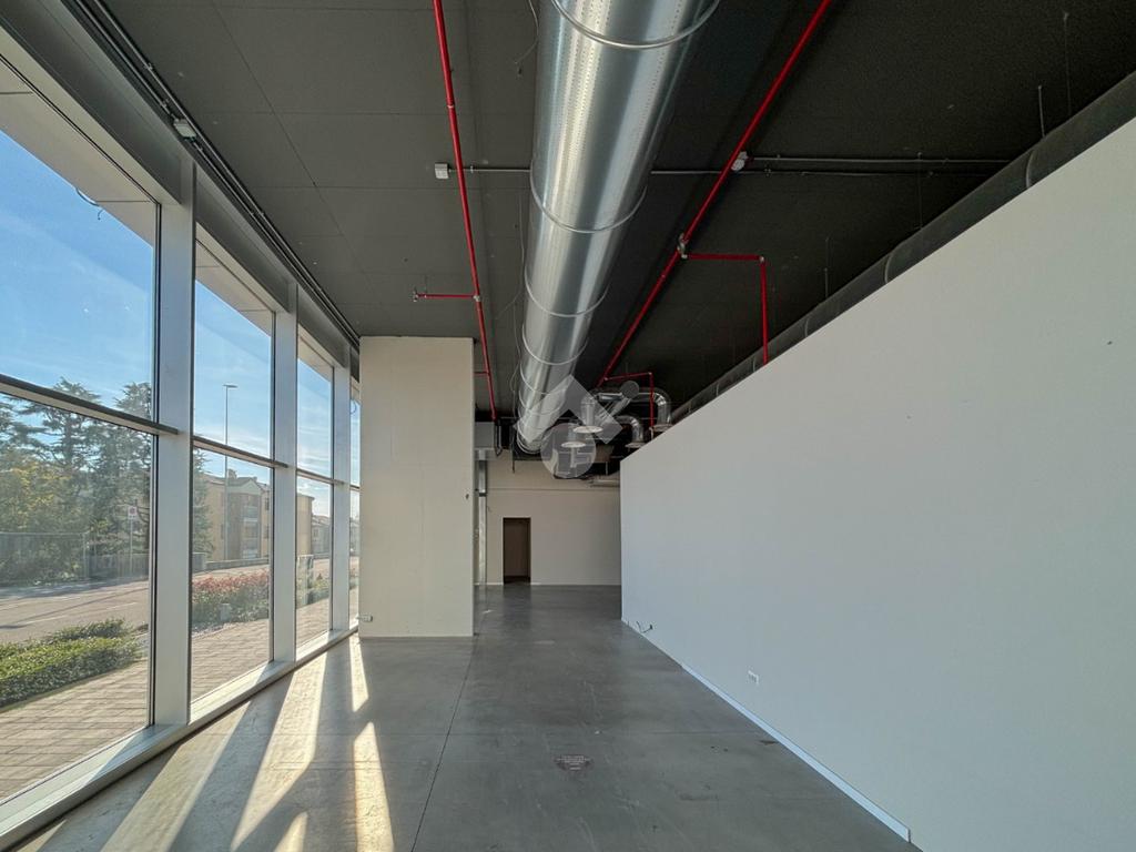 Il negozio misura circa 280 metri quadrati ed è dotato di un servizio igienico a norma disabili. L'ambiente risulta particolarmente luminoso grazie alla presenza di quattro grandi vetrine che affacciano direttamente su una via molto frequentata. All’interno del negozio sono presenti le seguenti impiantistiche: impianto elettrico e di illuminazione, impianto di riscaldamento e di condizionamento autonomo, l’antincendio ad estintori, idranti e sprinkler, l’anello antincendio condominiale, i muri REI e inoltre è presente la predisposizione per l’impianto d’allarme e di videosorveglianza. Al piano seminterrato dell’edificio troviamo un parcheggio di circa 180 metri quadrati destinato alla clientela e ai dipendenti dell’edificio.