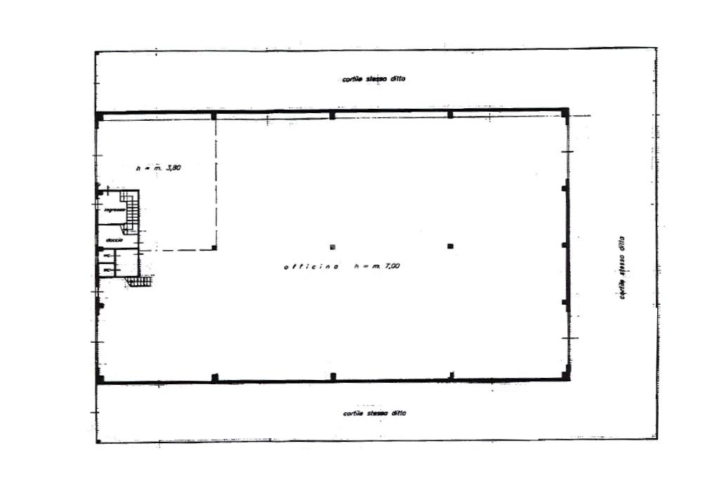 Il capannone misura circa 1.100 metri quadrati, ha un'altezza di circa 8,50 metri con altezza sottotrave di circa 7,50 metri. L'immobile è munito di quattro portoni di accesso alti circa 4,80 metri e di tre cancelli con larghezza di circa 8,80 metri e circa 3,50 metri. La struttura gode dell'impianto di riscaldamento (sia nel capannone sia negli uffici), dell’impianto di condizionamento (solo negli uffici), dell'impianto elettrico e di illuminazione e dell'antincendio ad idranti. All'esterno troviamo circa 800 metri quadrati di area esterna esclusiva e recintata. La struttura gode di uffici posti al piano primo che misurano circa 135 metri quadrati e di tre servizi igienici (due negli uffici e uno nel capannone). All’interno del capannone sono presenti 2 carroponti: 1 da 10 tonnellate e 1 da 3,2 tonnellate.