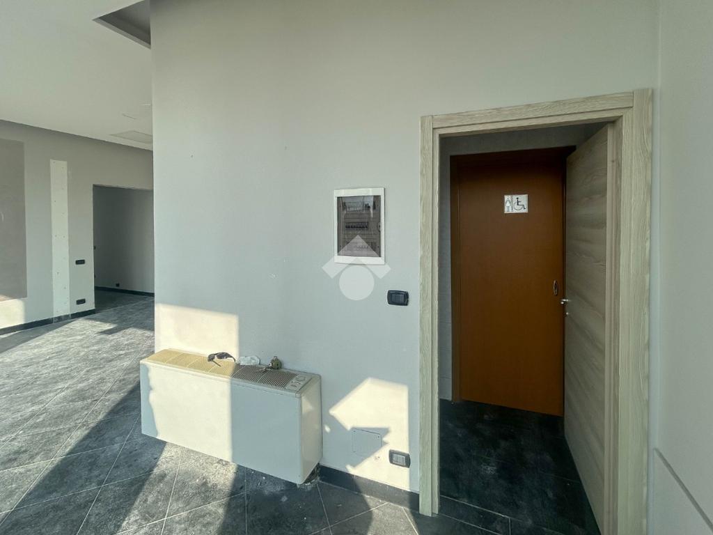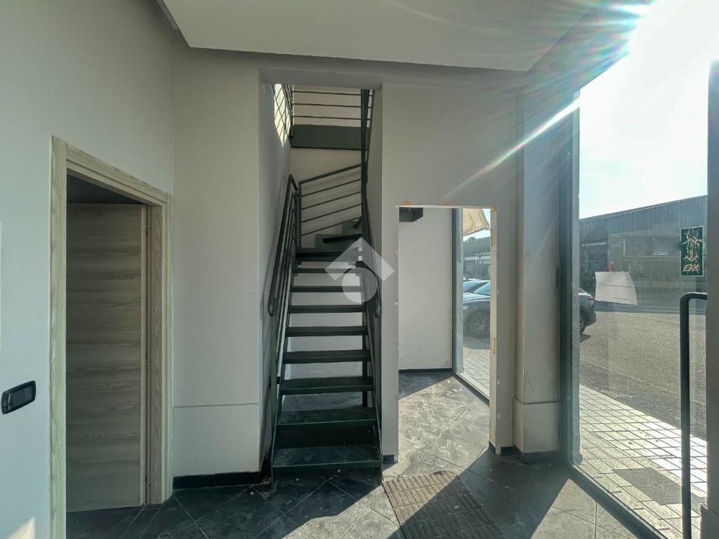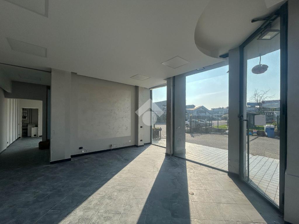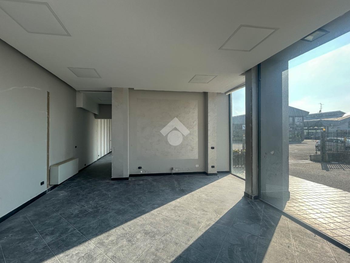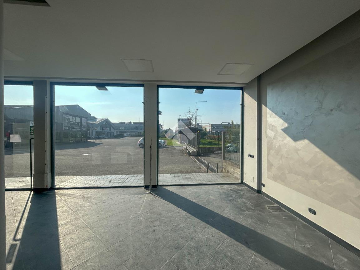 Il negozio misura circa 115 metri quadrati e si presenta diviso in 80 metri quadrati al piano terra e 35 metri quadrati al piano primo, raggiungibile tramite scala interna. L'ambiente risulta particolarmente luminoso grazie alla presenza di numerose e grandi vetrine che affacciano direttamente sulla provinciale. Al piano terra troviamo due servizi igienici di cui uno a norma disabili, mentre al piano primo troviamo un altro servizio igienico. All’interno del negozio sono presenti le seguenti impiantistiche: impianto elettrico e di illuminazione, impianto di riscaldamento e di condizionamento autonomo, anello antincendio condominiale. Il supercondominio, che comprende anche i negozi limitrofi, è dotato di un servizio di vigilanza armata notturna.