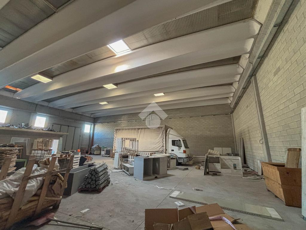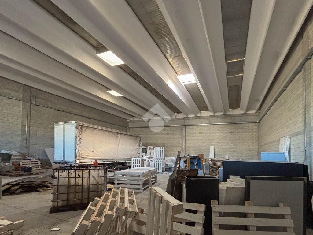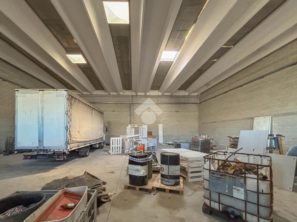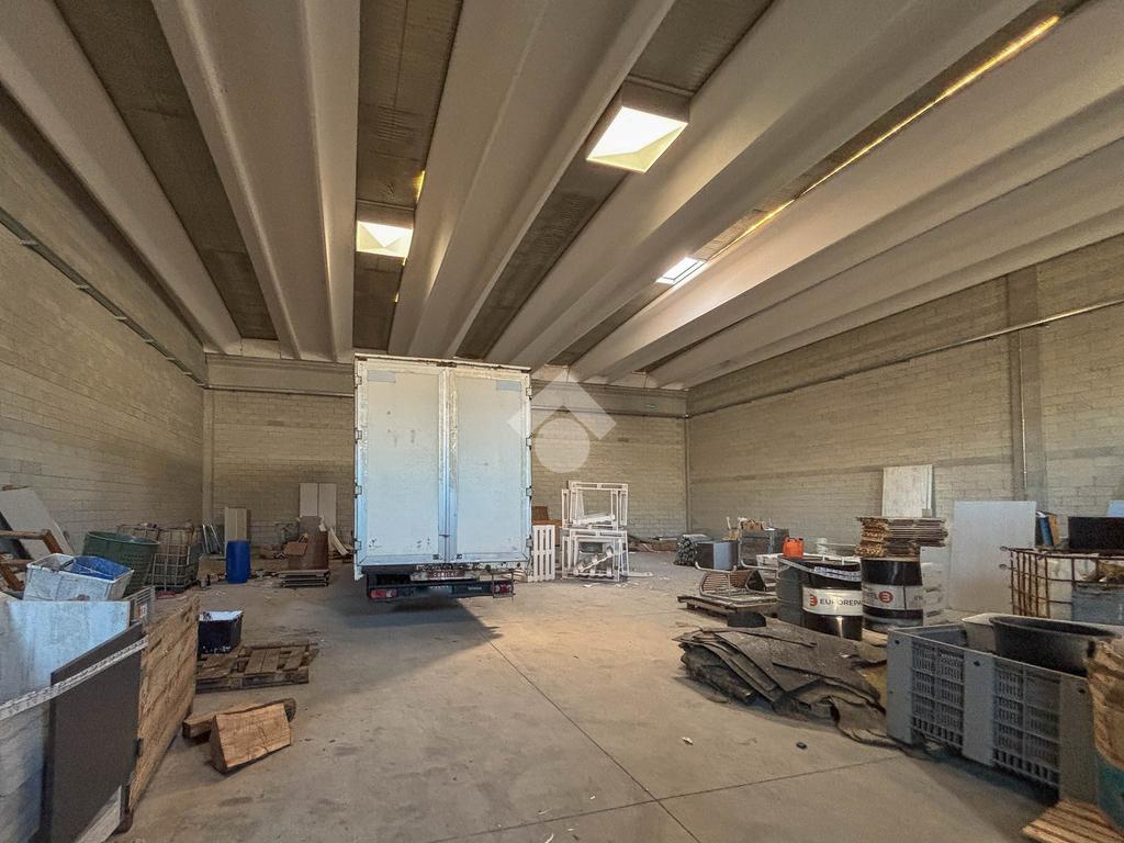 Il capannone misura circa 490 metri quadrati, ha un’altezza di circa 8,50 metri con altezza sottotrave di circa 7,00 metri, dispone di una sola campata e gode di un portone con altezza di circa 4,20 metri. All’interno è presente anche un ufficio di circa 10 metri quadrati e due servizi igienici con annesso spogliatoio, sopra l’ufficio attuale c’è una soletta dove volendo è possibile ricreare un’altra zona ufficio. La struttura è dotata dell'impianto elettrico e dell’anello antincendio condominiale. Possibilità di ingresso col bilico nella zona esterna.