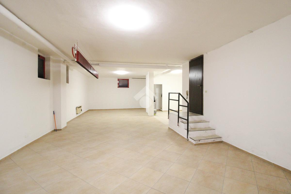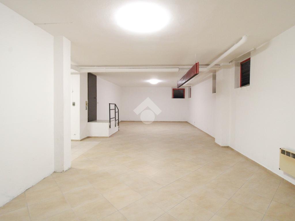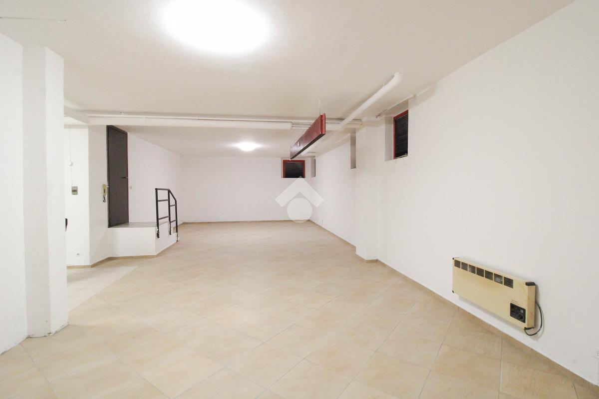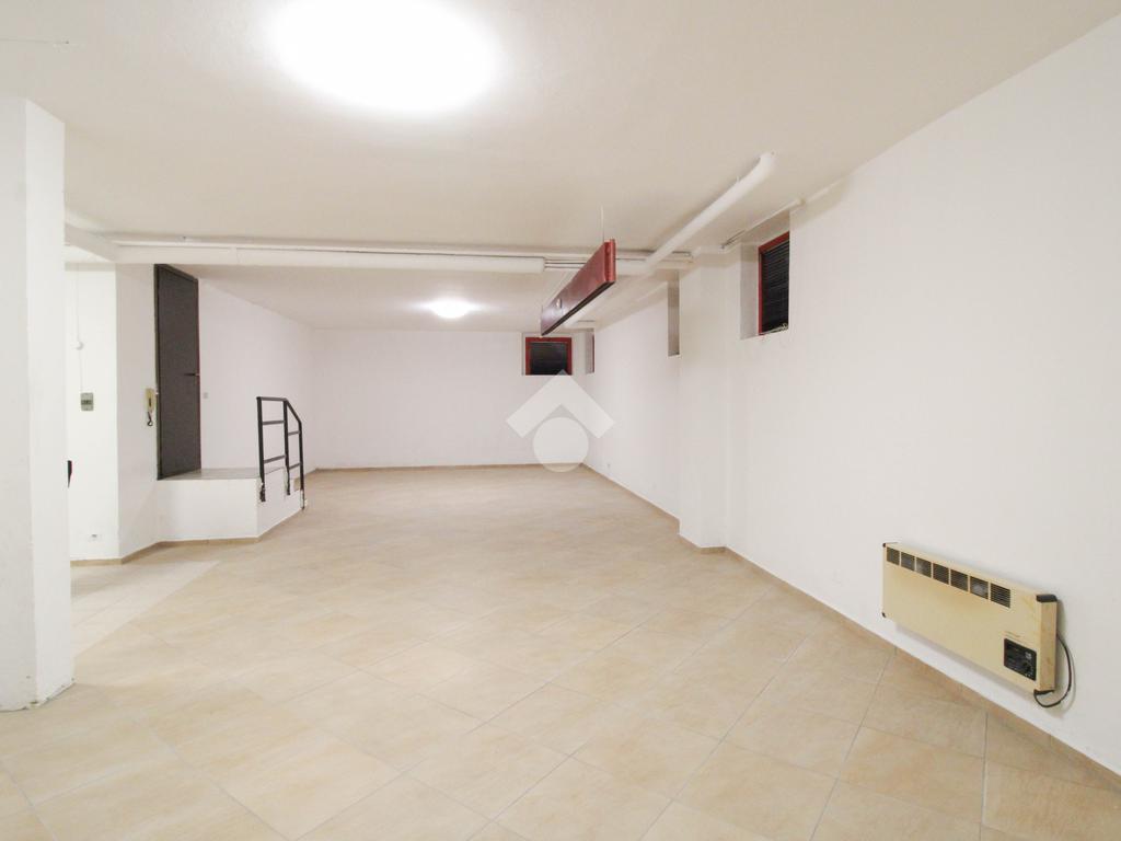 La soluzione immobiliare che viene posta in affitto ha una superficie che misura circa 90 metri quadrati disposti al piano seminterrato di una struttura che si erige su più livelli. La pianta è disposta in un grande ambiente open space dotato dei servizi igienici privati. Presente ed installato l'impianto di riscaldamento, l'impianto elettrico e quello di illuminazione. Inoltre, l'immobile è dotato del controllo degli accessi. La pavimentazione è stata realizzata con fondo rivestito in piastrelle. All'esterno sono disponibili parcheggi pubblici ed esclusivi.
