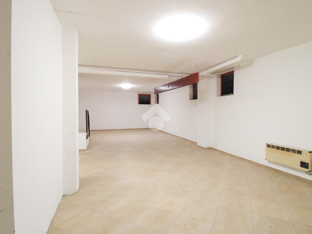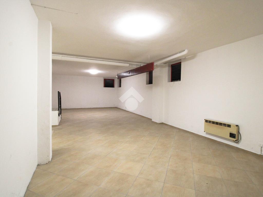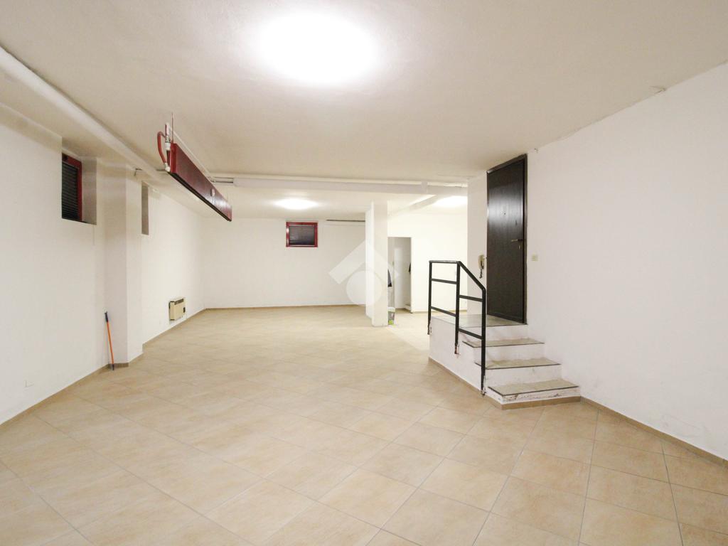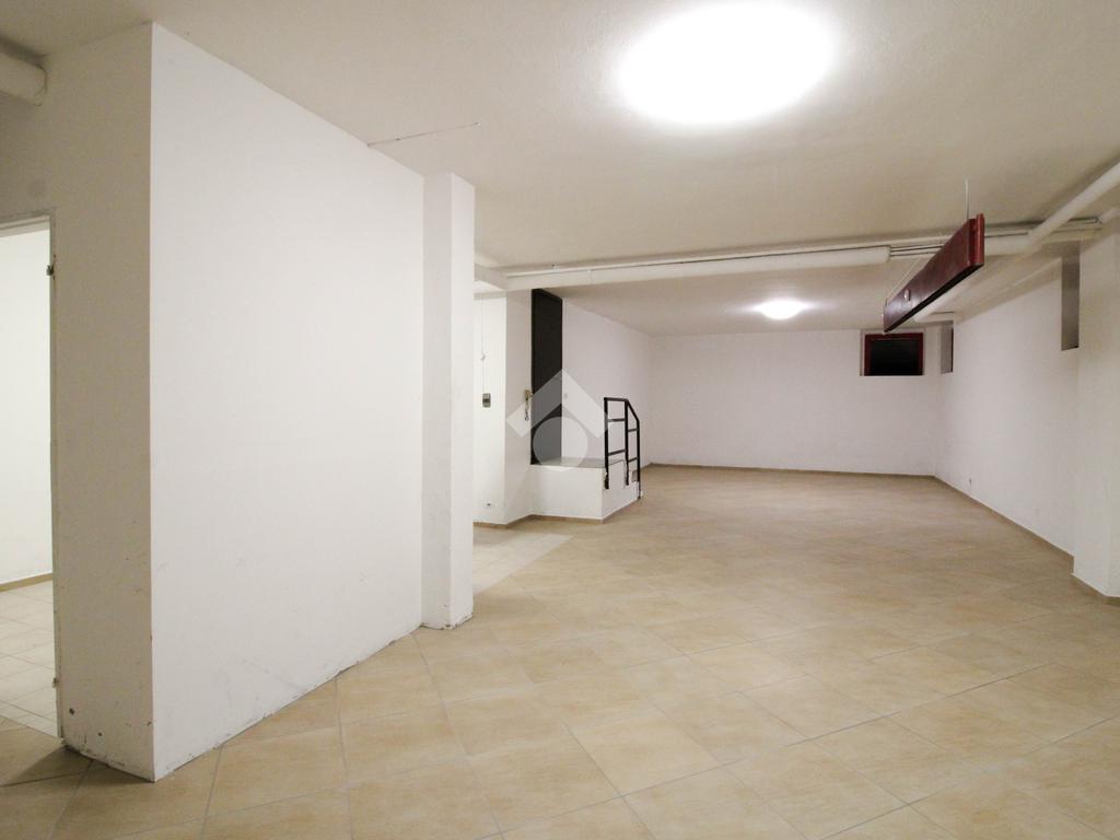 La soluzione immobiliare che viene posta in affitto ha una superficie che misura circa 90 metri quadrati disposti al piano seminterrato di una struttura che si erige su più livelli. La pianta è disposta in un grande ambiente open space dotato dei servizi igienici privati. Presente ed installato l'impianto di riscaldamento, l'impianto elettrico e quello di illuminazione. Inoltre, l'immobile è dotato del controllo degli accessi. La pavimentazione è stata realizzata con fondo rivestito in piastrelle. All'esterno sono disponibili parcheggi pubblici ed esclusivi.