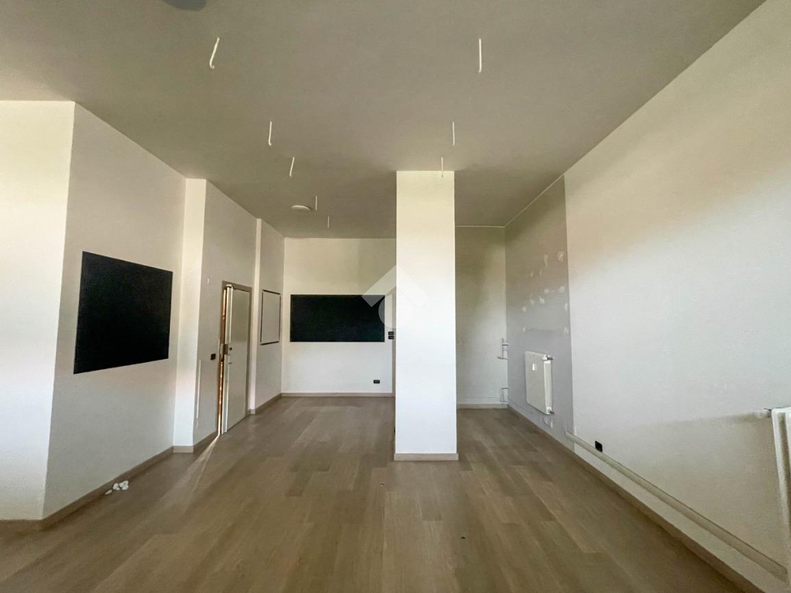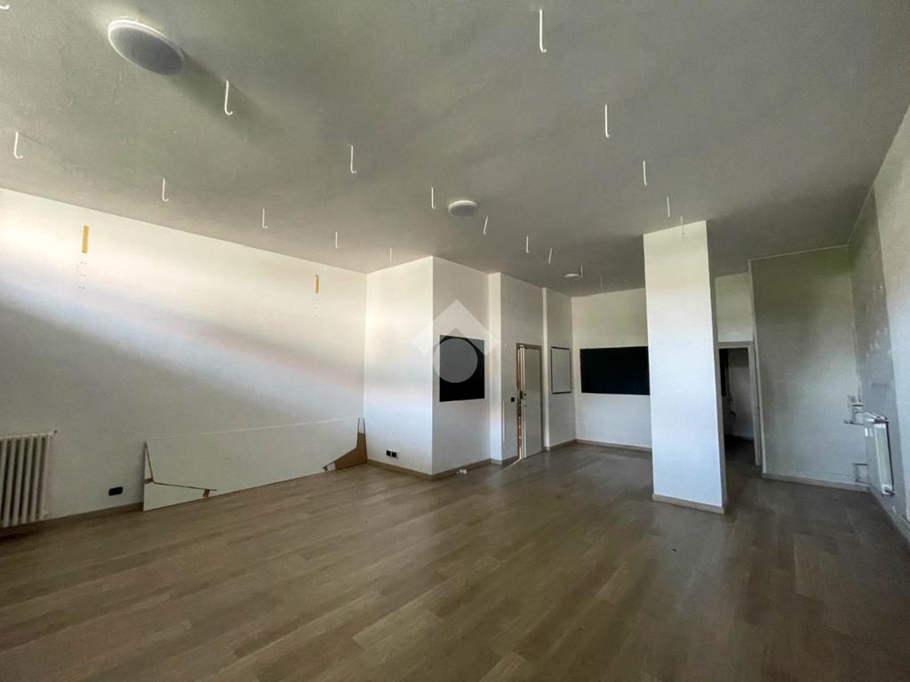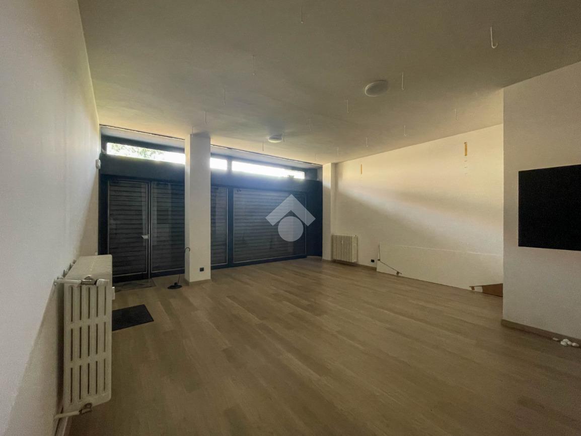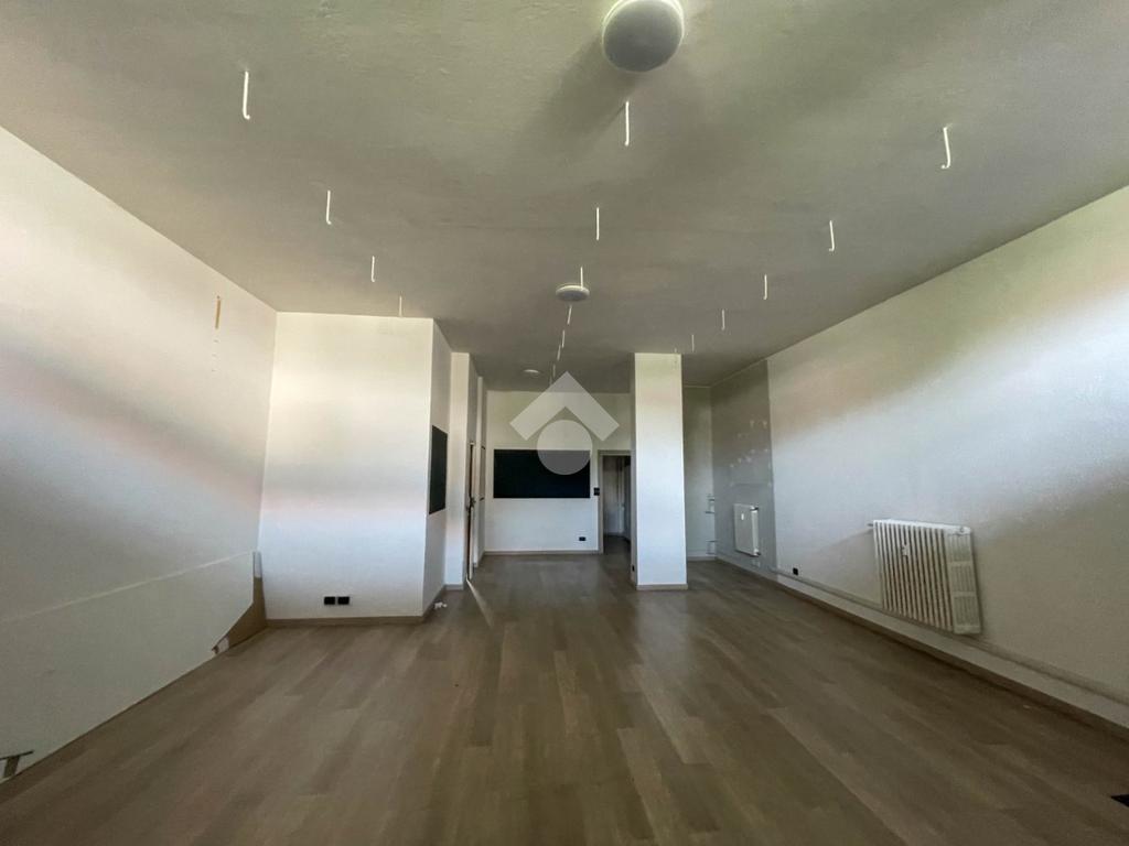 Ufficio di circa 75 metri quadrati in buone condizioniDisposto al piano terra (rialzato da due gradini) di una struttura condominialeUn servizio igienico (non a norma disabili)2 vetrine fronte strada protette da una saracinesca automaticaIMPIANTI E DOTAZIONI: Riscaldamento centralizzato a caloriferi, impianto elettrico e di illuminazione, impianto d’allarme