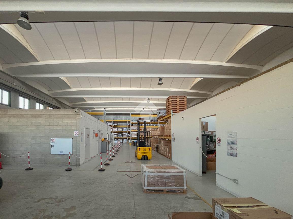 Il capannone ha una superficie di circa 640 metri quadrati, ha un’altezza sottotrave di 7,00 metri e gode di due portoni con altezza di circa 4,50 metri e di due cancelli con larghezza di circa 8,00 metri. L'immobile possiede impianto di riscaldamento e condizionamento autonomo (solo negli uffici), impianto d’illuminazione, impianto elettrico, impianto d’allarme e la predisposizione per la videosorveglianza. All’interno della struttura sono presenti 110 metri quadrati di ufficio e tre servizi igienici (di cui uno a norma disabili). Il capannone possiede l’anello antincendio condominiale, l’antincendio ad estintori ed idranti e i muri REI. L’area esterna, recintata e ed esclusiva, di circa 250 metri quadrati, comprende un giardino con accesso diretto all’ufficio e una zona dedicata al carico/scarico con accesso al capannone. Un’ulteriore area comune con il capannone adiacente, consente di accedere all'altro portone.